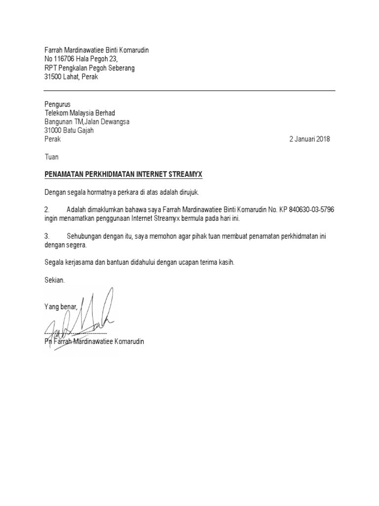 Contoh Surat Penamatan Perkhidmatan Internet Otosection